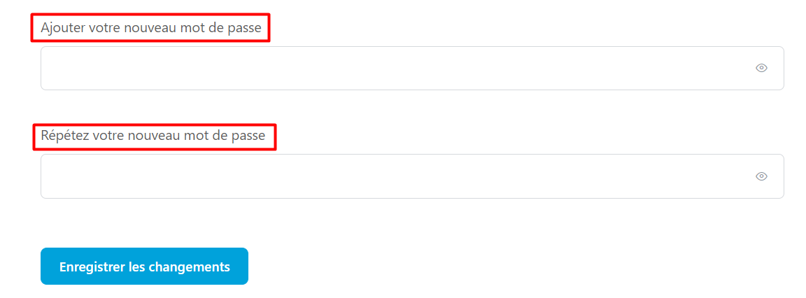 Ensuite, descendez un peu plus bas et insérez votre nouveau mot de passe dans "Ajouter votre nouveau mot de passe" et "Répétez votre nouveau mot de passe"