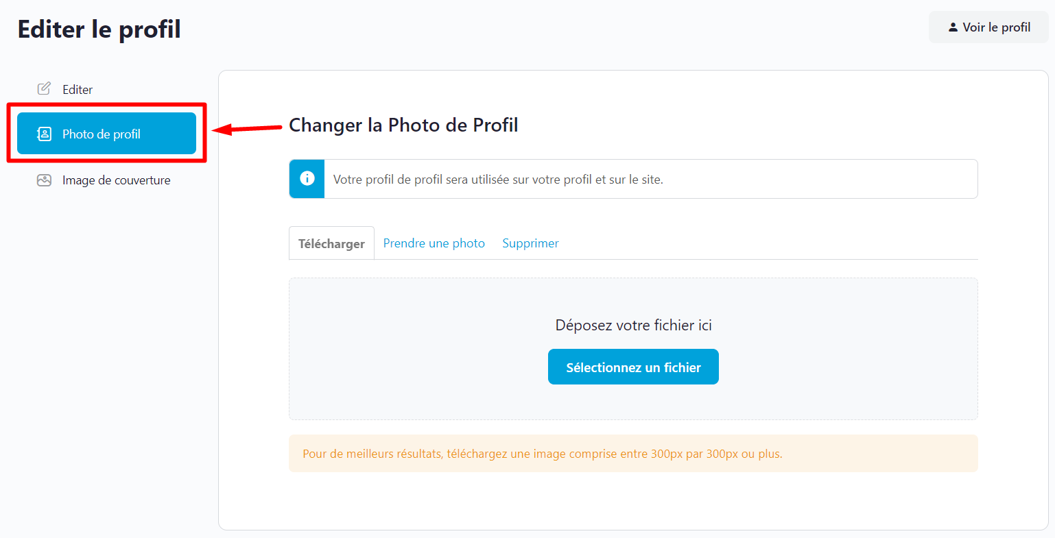 Étape 3 : Changer la photo de profil