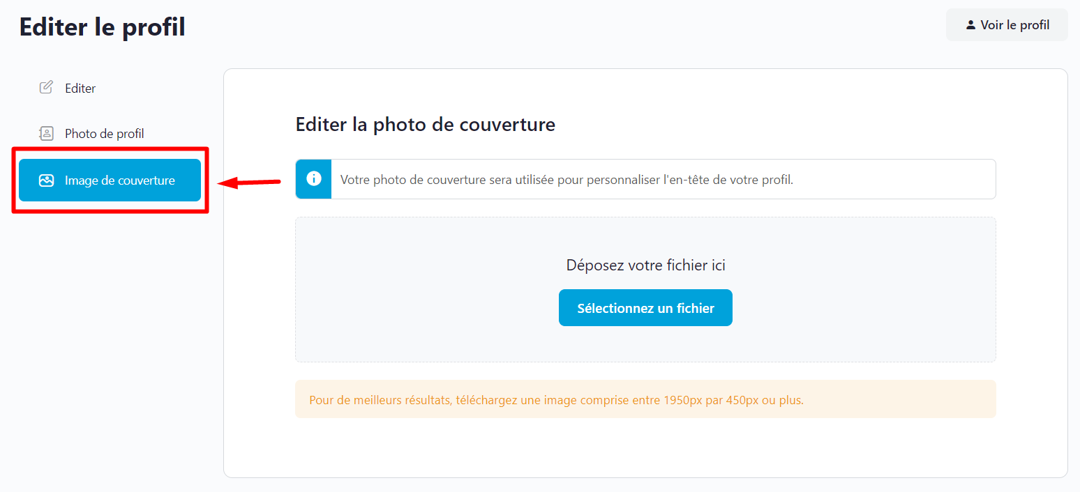 Cette option vous permet de personnaliser l’arrière-plan de votre profil avec une image de couverture.